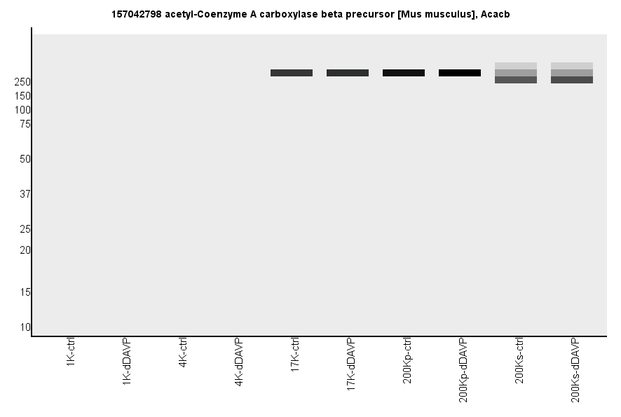 | 157042798 | Acacb | 273953 | 1.10 | 1.10 | 1.10 | 1.10 | 0.85 | 0.85 | acetyl-Coenzyme A carboxylase beta precursor | |||||||||||