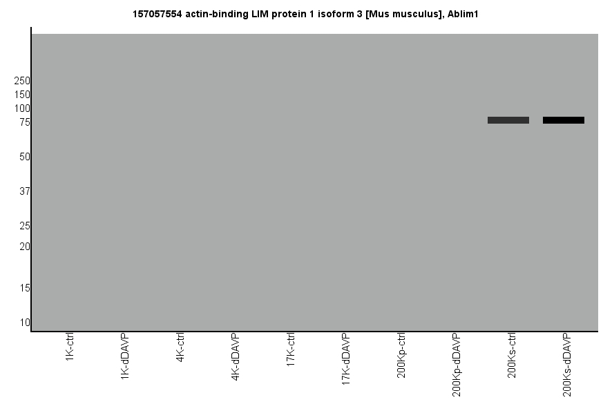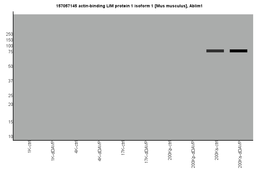 | 157057145 | Ablim1 | 96704 | 0.86 | 0.86 | actin-binding LIM protein 1 isoform 1 | |||||||||||||||