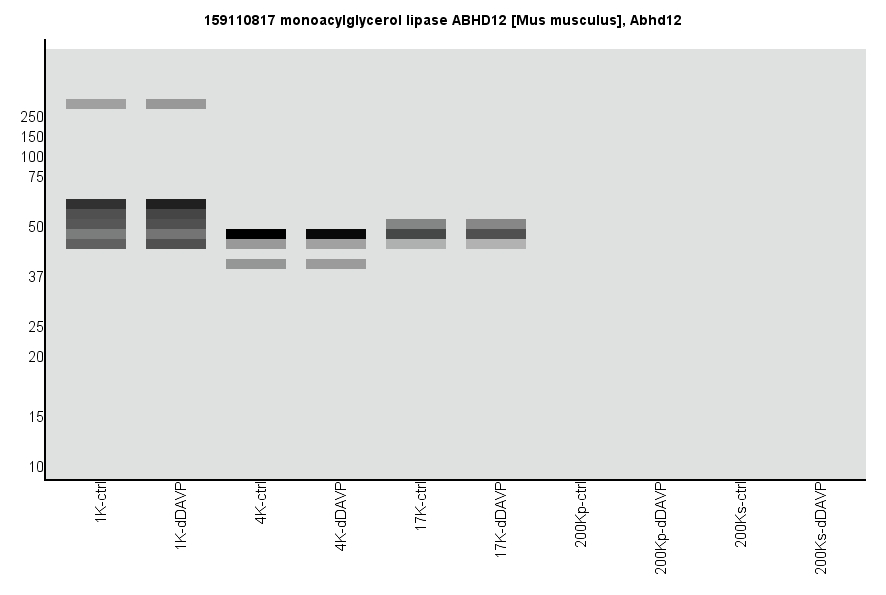 | 159110817 | Abhd12 | 45139 | 1.31 | 1.31 | 0.98 | 0.98 | 0.98 | 0.98 | monoacylglycerol lipase ABHD12 | |||||||||||