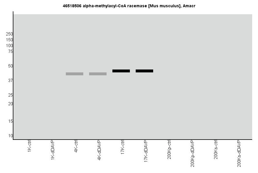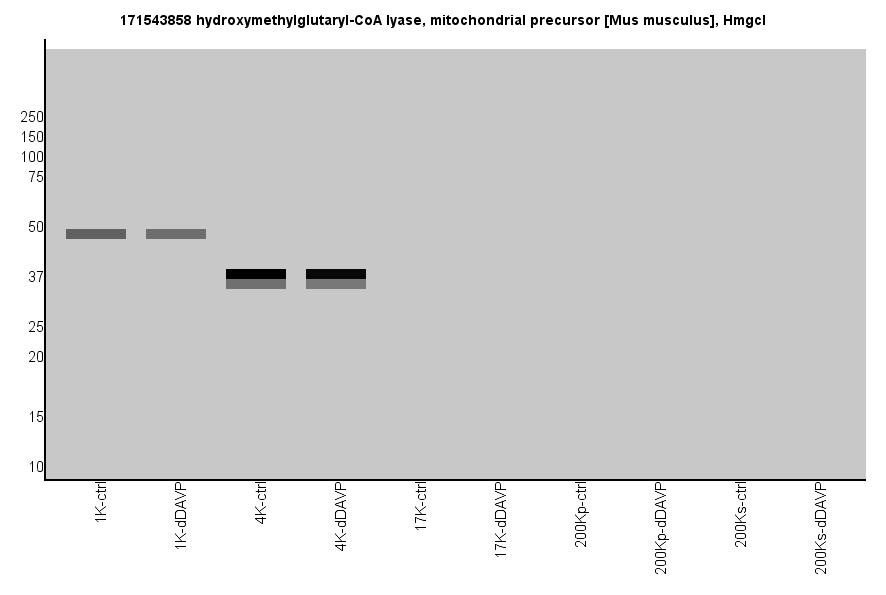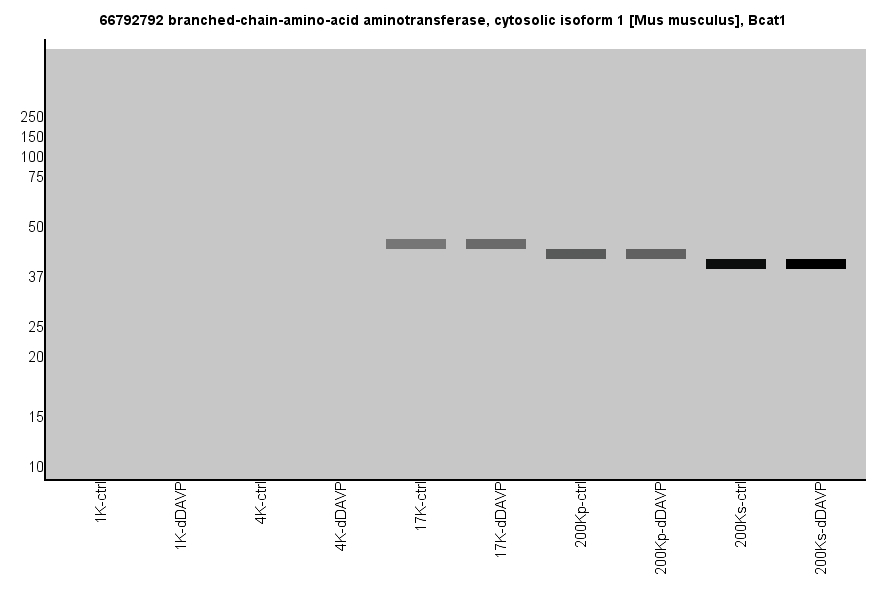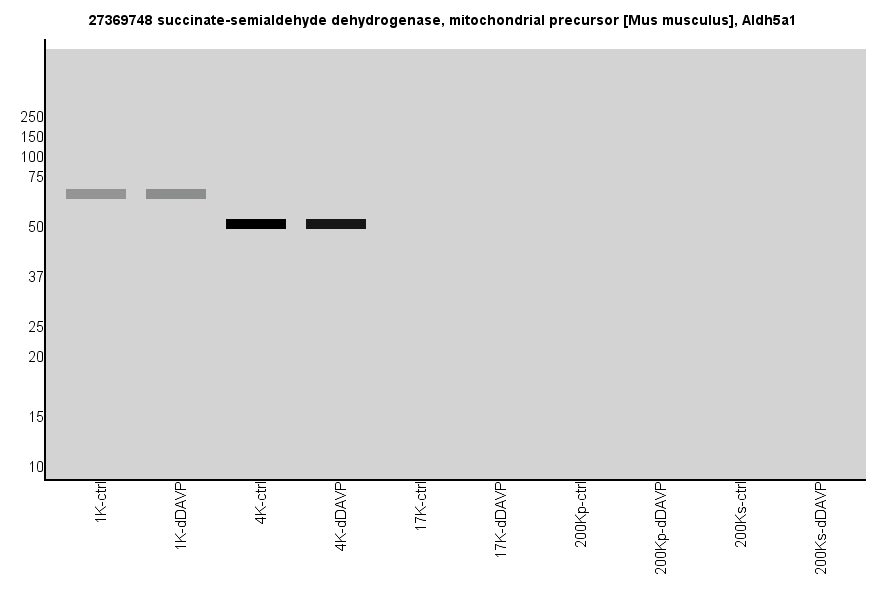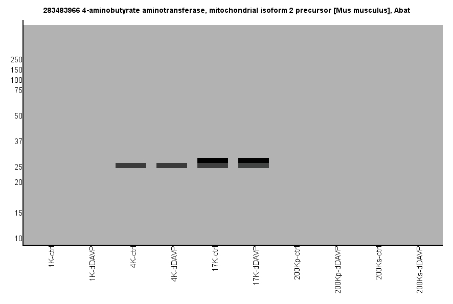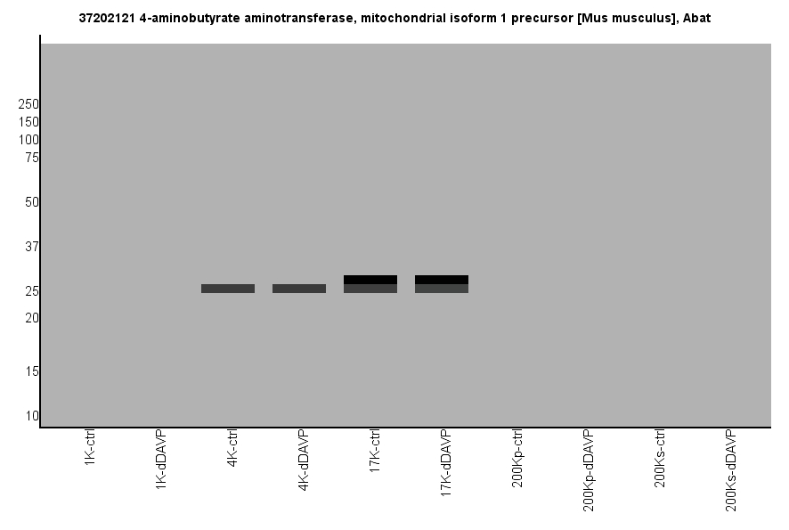 | 37202121 | Abat | 53220 | 0.44 | 0.44 | 0.46 | 0.46 | 4-aminobutyrate aminotransferase, mitochondrial isoform 1 precursor | |||||||||||||