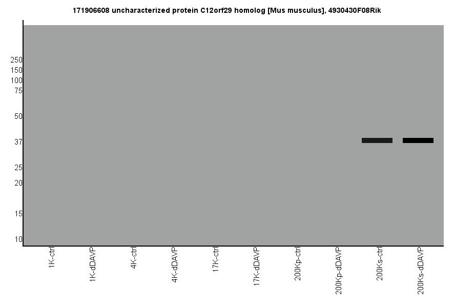 | 171906608 | 4930430F08Rik | 37287 | 0.87 | 0.87 | uncharacterized protein C12orf29 homolog | |||||||||||||||