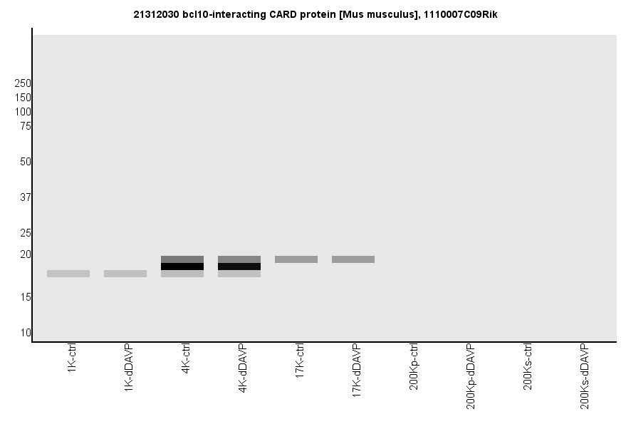| 21312030 | 1110007C09Rik | 20805 | 0.80 | 0.80 | 0.84 | 0.84 | 0.88 | 0.88 | bcl10-interacting CARD protein | |||||||||||