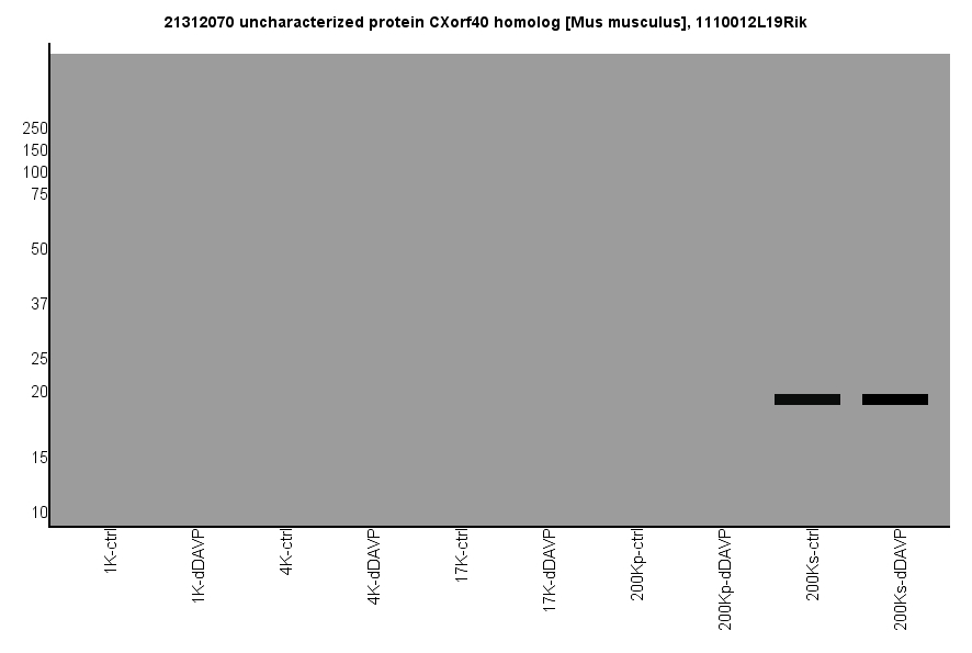 | 21312070 | 1110012L19Rik | 17928 | 1.03 | 1.03 | uncharacterized protein CXorf40 homolog | |||||||||||||||