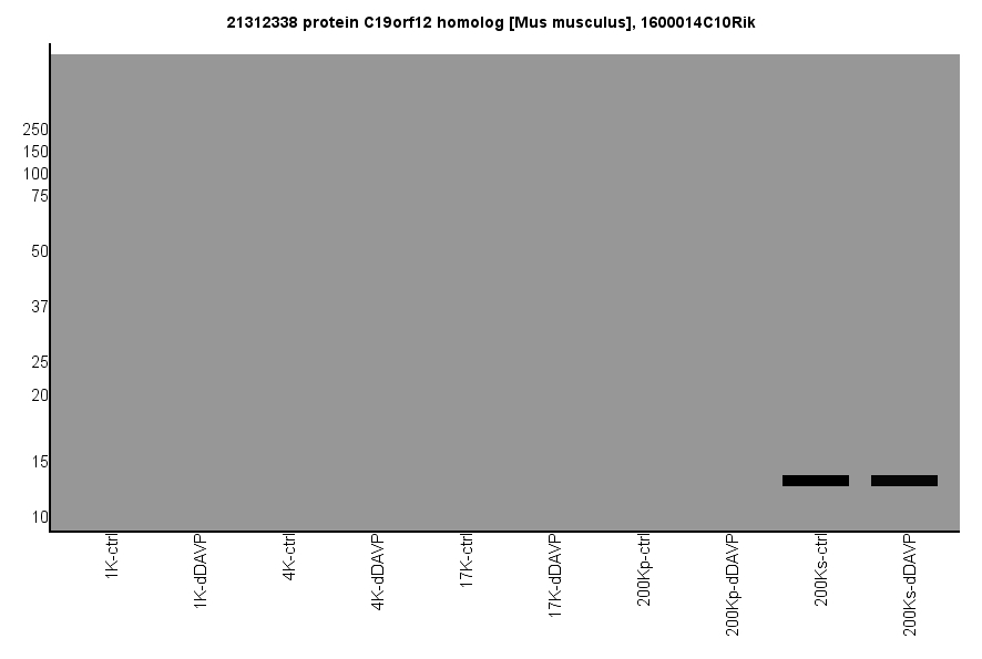 | 21312338 | 1600014C10Rik | 14956 | 0.89 | 0.89 | protein C19orf12 homolog | |||||||||||||||