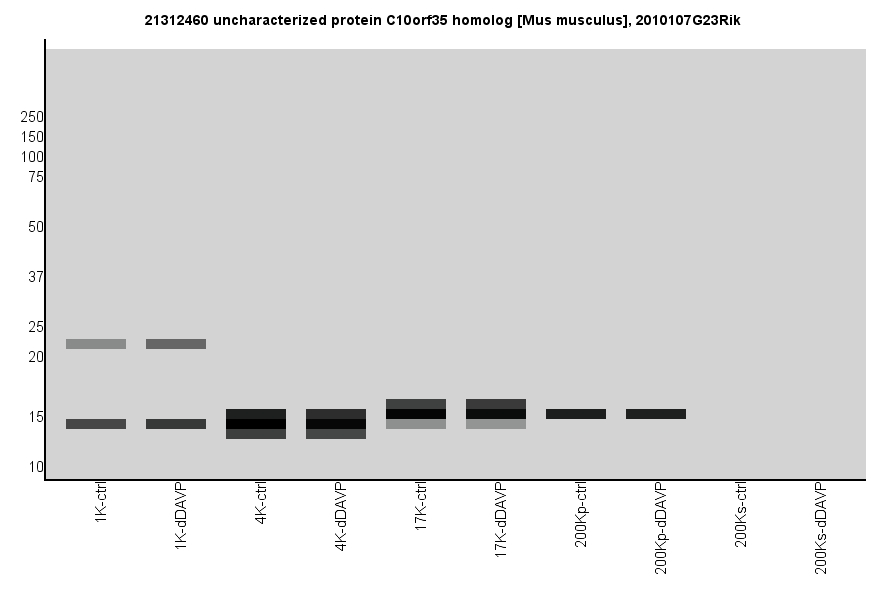 | 21312460 | 2010107G23Rik | 12987 | 1.07 | 1.07 | 1.07 | 1.07 | 1.12 | 1.12 | 1.12 | 1.12 | uncharacterized protein C10orf35 homolog | |||||||||