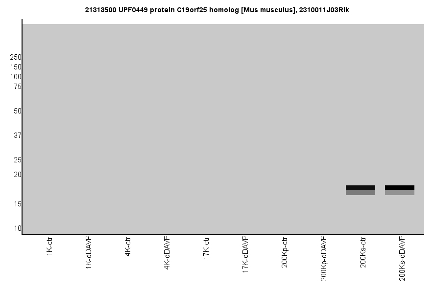 | 21313500 | 2310011J03Rik | 11980 | 1.39 | 1.39 | UPF0449 protein C19orf25 homolog | |||||||||||||||