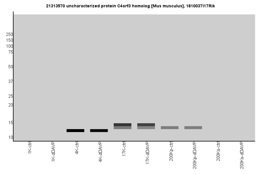 | 21313570 | 1810037I17Rik | 7273 | 1.82 | 1.82 | 1.98 | 1.98 | 1.90 | 1.90 | uncharacterized protein C4orf3 homolog | |||||||||||