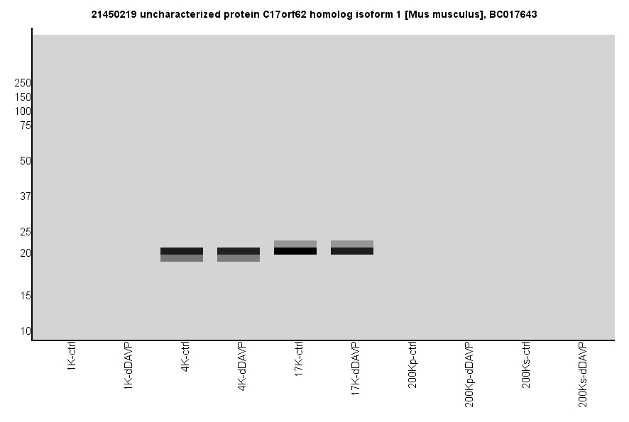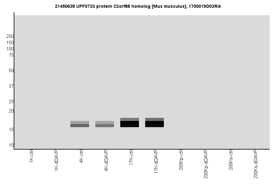 | 21450635 | 1700019D03Rik | 11795 | 1.27 | 1.27 | 1.33 | 1.33 | UPF0733 protein C2orf88 homolog | |||||||||||||