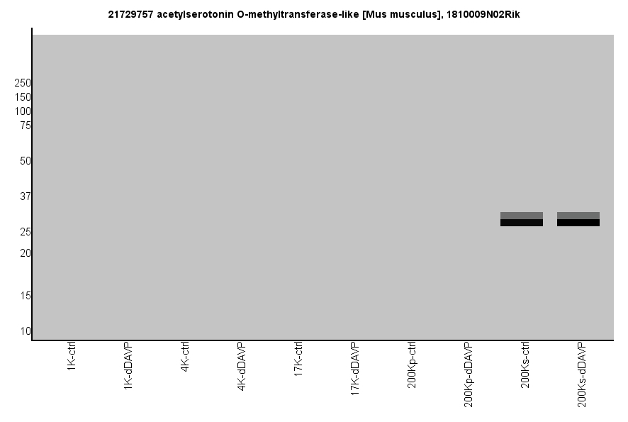 | 21729757 | 1810009N02Rik | 24935 | 0.98 | 0.98 | acetylserotonin O-methyltransferase-like | |||||||||||||||