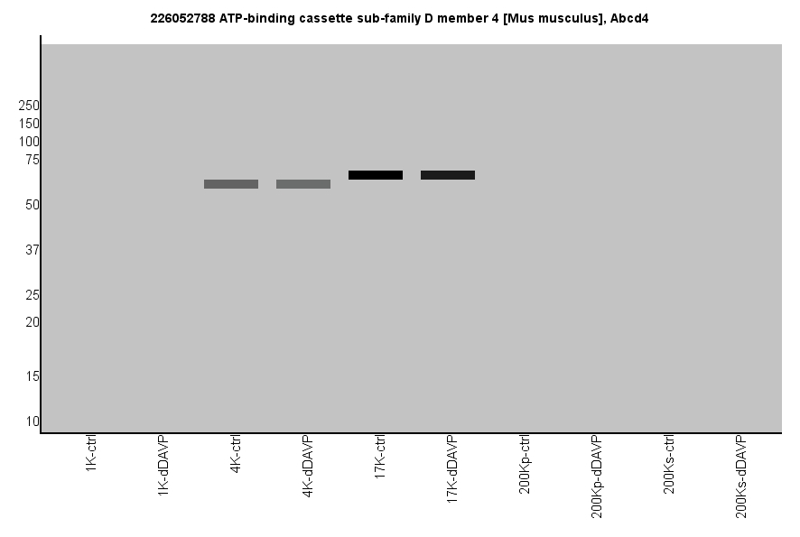 | 226052788 | Abcd4 | 68452 | 0.86 | 0.86 | 0.96 | 0.96 | ATP-binding cassette sub-family D member 4 | |||||||||||||
