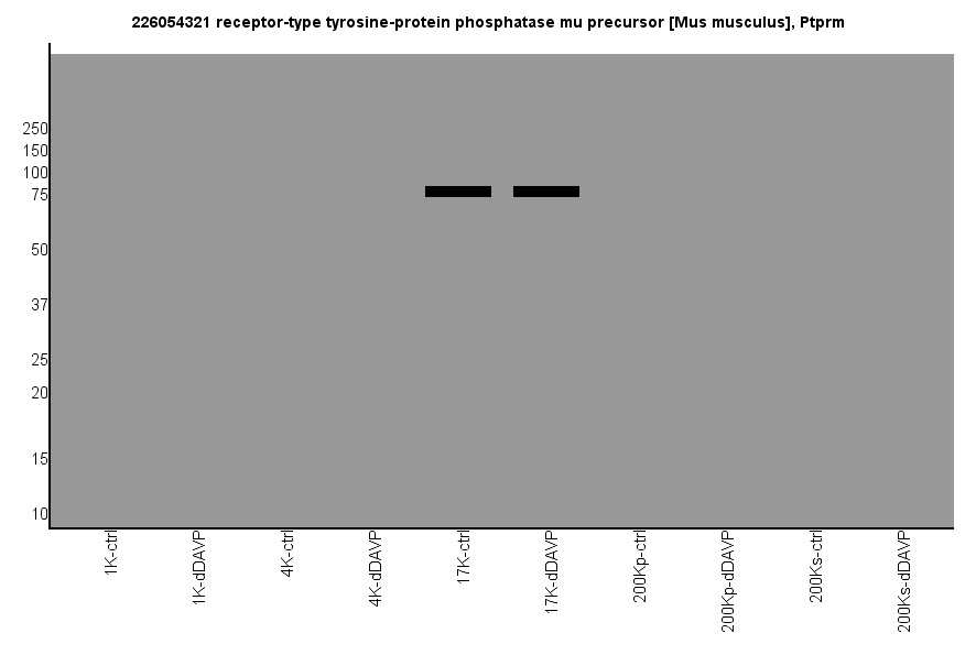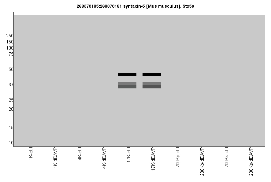 | Virtual Western | Symbol | MW (Da) | Ctrl | dDAVP | Ctrl | dDAVP | Ctrl | dDAVP | Ctrl | dDAVP | Ctrl | dDAVP | Annotation | |||||||
