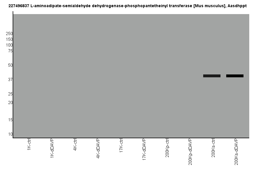 | 227496837 | Aasdhppt | 35633 | 0.96 | 0.96 | L-aminoadipate-semialdehyde dehydrogenase-phosphopantetheinyl transferase | |||||||||||||||