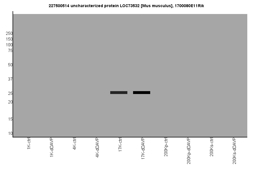 | 227500514 | 1700080E11Rik | 22334 | 1.05 | 1.05 | uncharacterized protein LOC73532 | |||||||||||||||