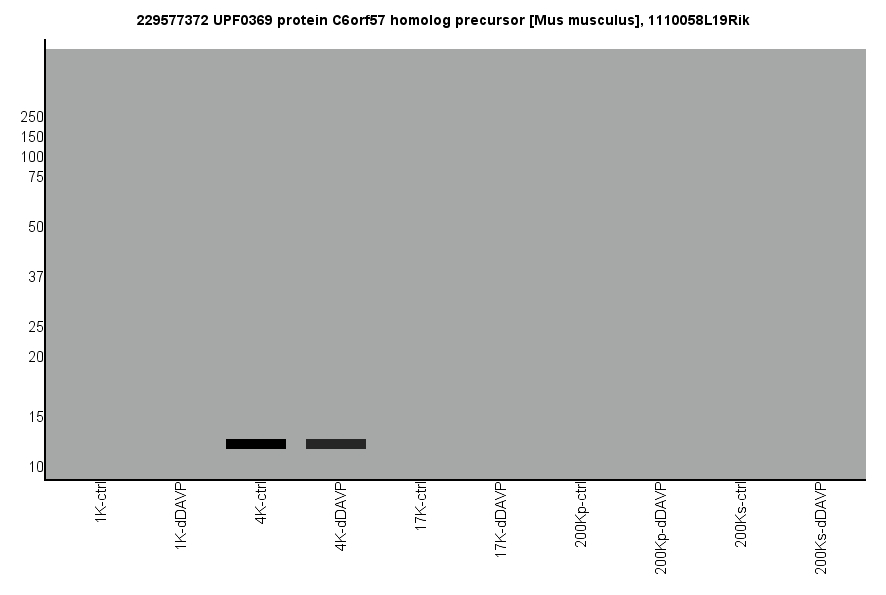 | 229577372 | 1110058L19Rik | 8429 | 1.42 | 1.42 | UPF0369 protein C6orf57 homolog precursor | |||||||||||||||
