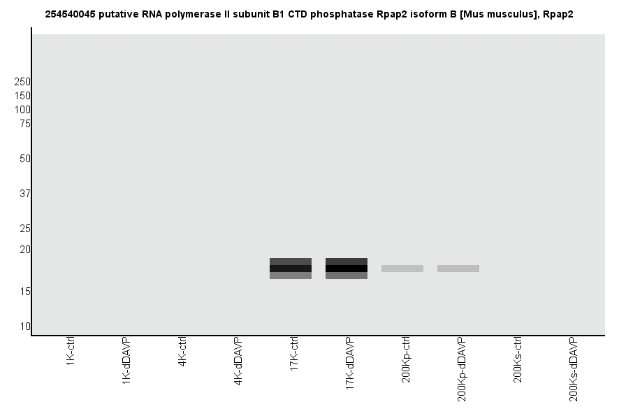 | 268370114 | 1110057K04Rik | 26649 | 1.79 | 1.79 | 1.28 | 1.28 | 1.28 | 1.28 | UPF0554 protein C2orf43 homolog isoform 2 | |||||||||||