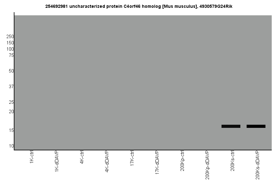 | 254692981 | 4930579G24Rik | 11730 | 1.27 | 1.27 | uncharacterized protein C4orf46 homolog | |||||||||||||||