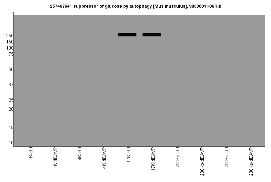 | 257467641 | 9830001H06Rik | 183015 | 1.28 | 1.28 | suppressor of glucose by autophagy | |||||||||||||||