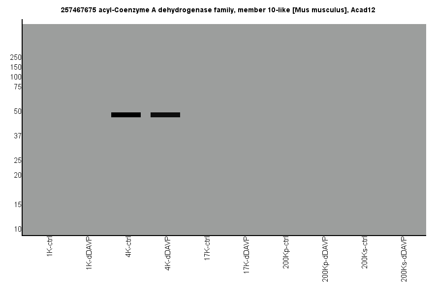 | 257467675 | Acad12 | 61259 | 0.72 | 0.72 | acyl-Coenzyme A dehydrogenase family, member 10-like | |||||||||||||||