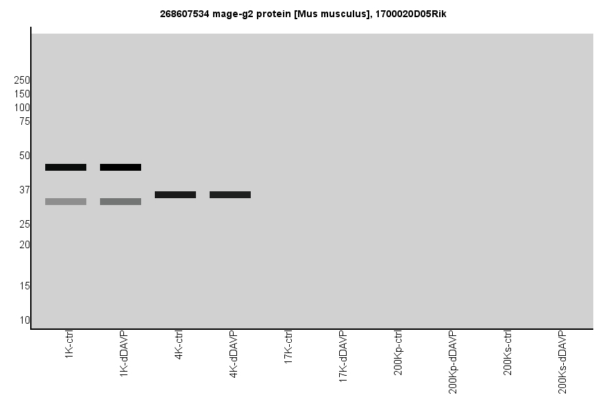 | 268607534 | 1700020D05Rik | 33312 | 1.23 | 1.23 | 0.91 | 0.91 | mage-g2 protein | |||||||||||||