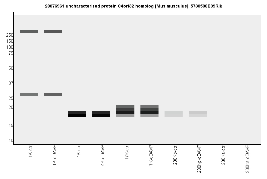 | 28076961 | 5730508B09Rik | 14380 | 21.56 | 21.56 | 1.19 | 1.19 | 1.25 | 1.25 | 1.25 | 1.25 | uncharacterized protein C4orf32 homolog | |||||||||