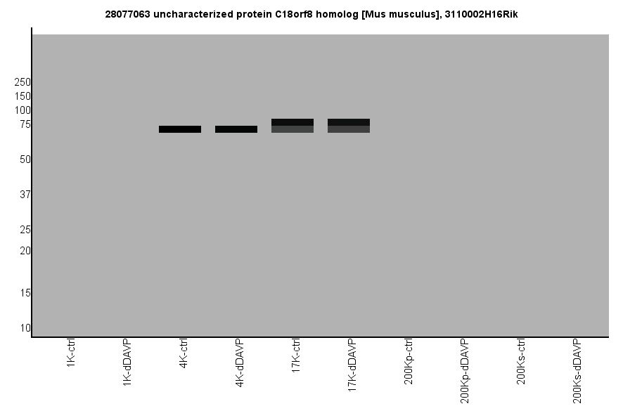 | 28077063 | 3110002H16Rik | 74792 | 0.98 | 0.98 | 1.11 | 1.11 | uncharacterized protein C18orf8 homolog | |||||||||||||