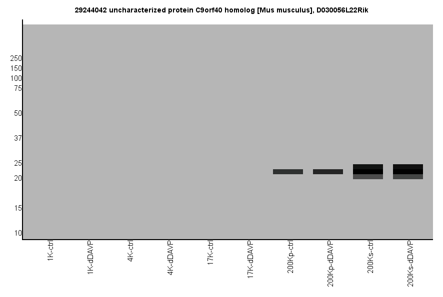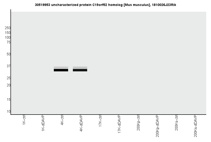 | 30519953 | 1810026J23Rik | 29284 | 0.96 | 0.96 | uncharacterized protein C19orf52 homolog | |||||||||||||||