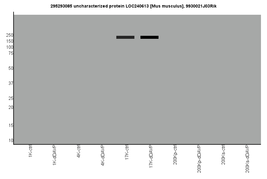 | 295293085 | 9930021J03Rik | 226395 | 0.83 | 0.83 | uncharacterized protein LOC240613 | |||||||||||||||