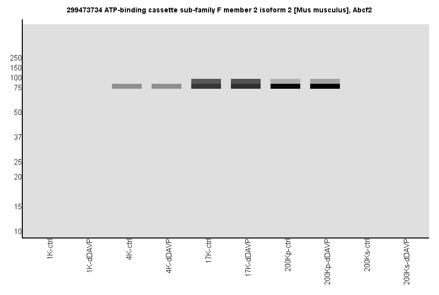 | 299473734 | Abcf2 | 71522 | 1.15 | 1.15 | 1.15 | 1.15 | 1.15 | 1.15 | ATP-binding cassette sub-family F member 2 isoform 2 | |||||||||||