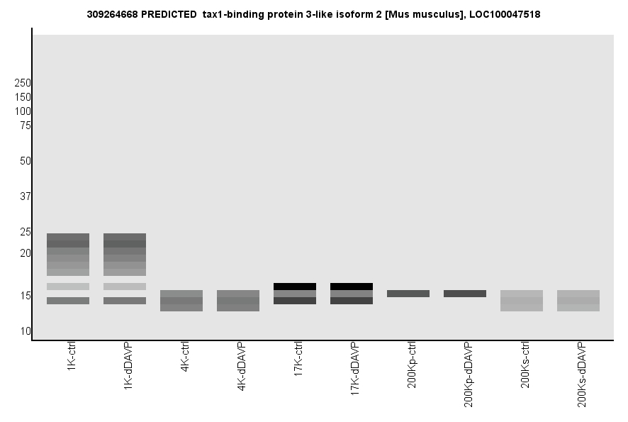 | 299473737 | Aamp | 46835 | 1.13 | 1.13 | 1.25 | 1.25 | 1.13 | 1.13 | 1.13 | 1.13 | angio-associated migratory cell protein isoform 1 | |||||||||
