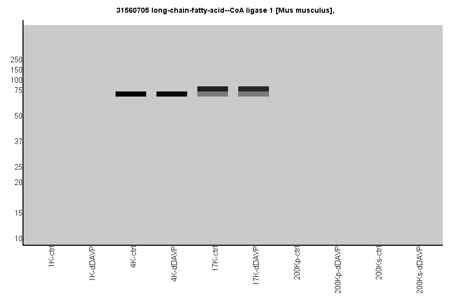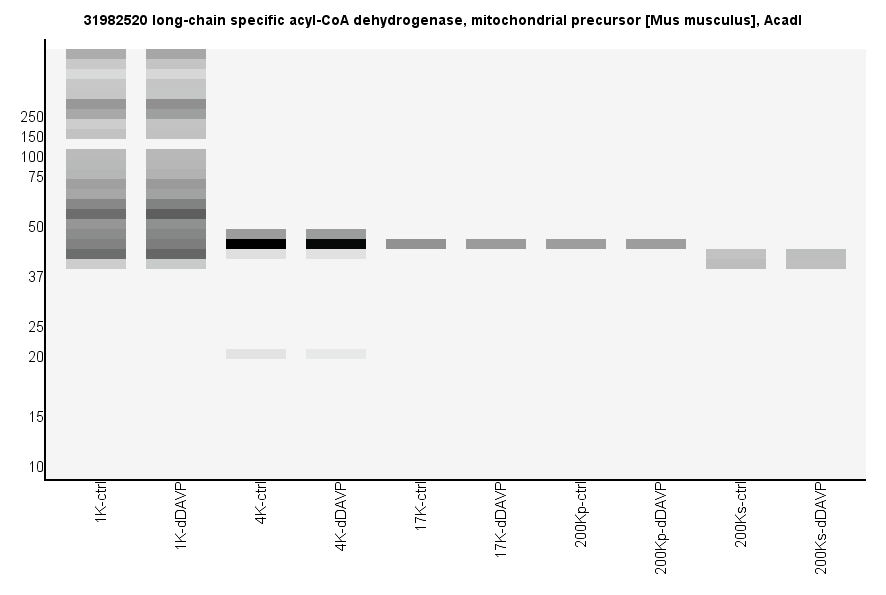 | 31982520 | Acadl | 44641 | 0.83 | 1.18 | 0.90 | 0.90 | 0.90 | 0.90 | 0.90 | 0.90 | 0.77 | 0.83 | long-chain specific acyl-CoA dehydrogenase, mitochondrial precursor | |||||||