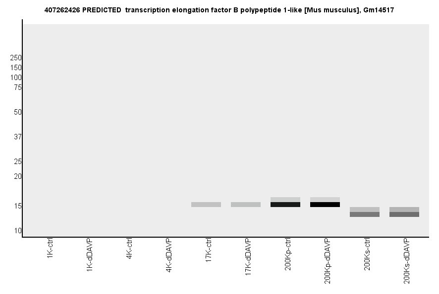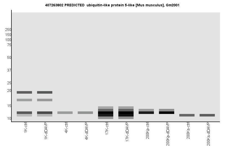 | 407262394 | 2410127L17Rik | 40230 | 1.10 | 1.10 | 1.01 | 1.01 | 1.01 | 1.01 | UPF0586 protein C9orf41 homolog isoform 3 | |||||||||||