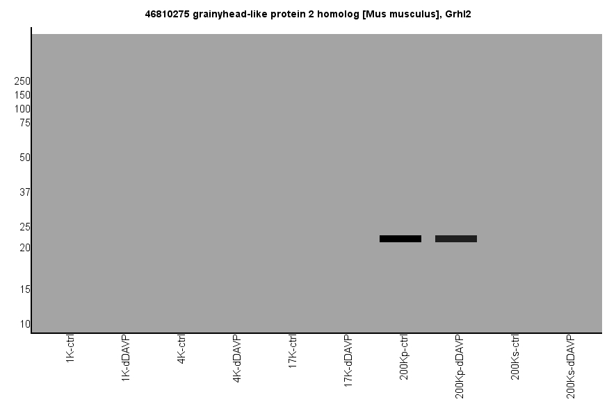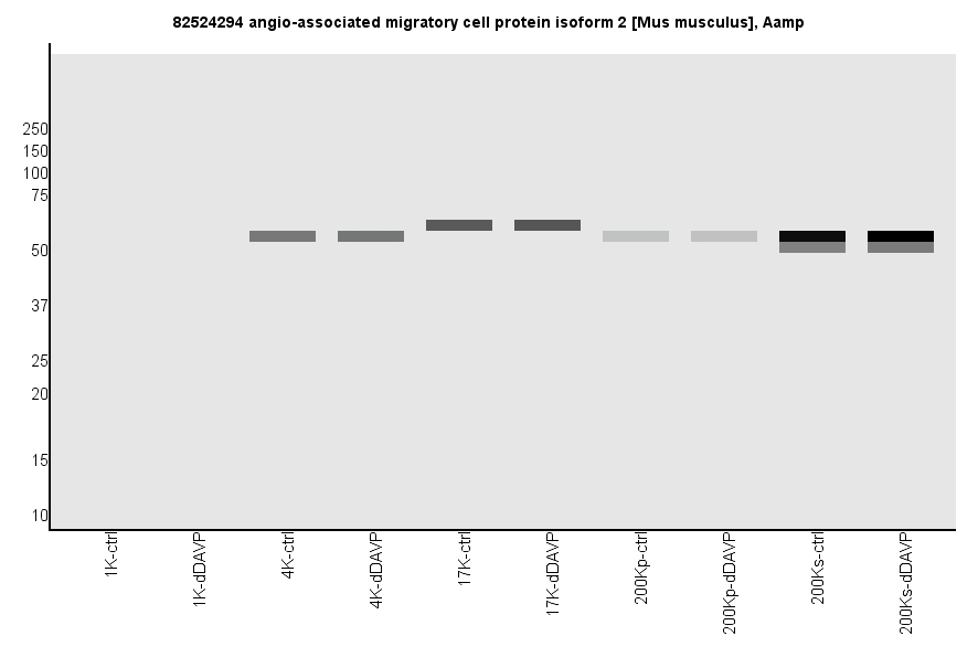| 82524294 | Aamp | 46764 | 1.13 | 1.13 | 1.25 | 1.25 | 1.13 | 1.13 | 1.13 | 1.13 | angio-associated migratory cell protein isoform 2 | |||||||||