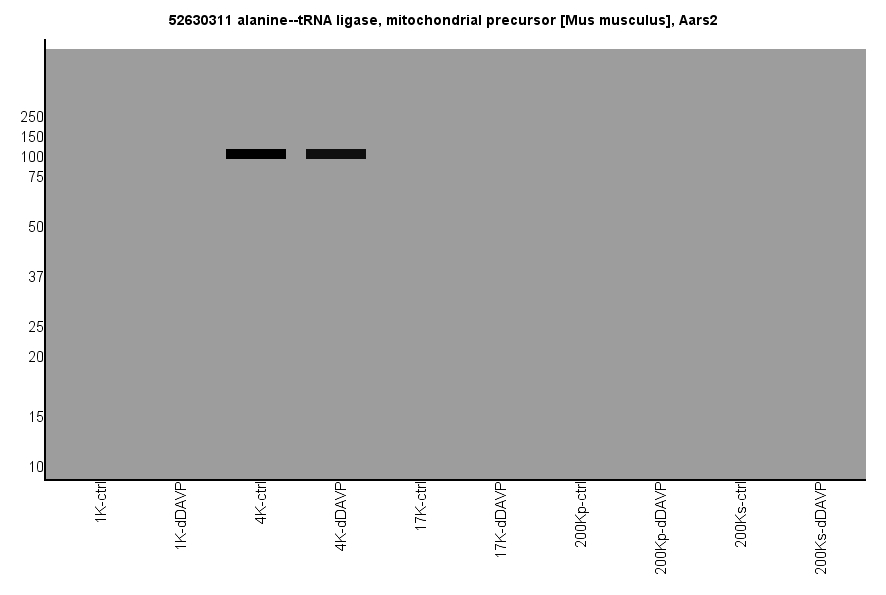 | 52630311 | Aars2 | 104404 | 1.06 | 1.06 | alanine--tRNA ligase, mitochondrial precursor | |||||||||||||||