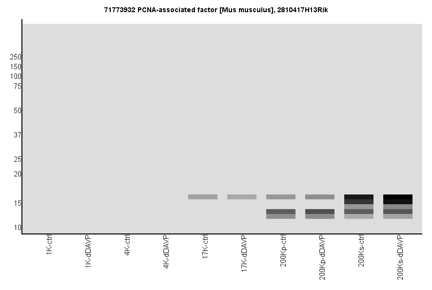 | 71773932 | 2810417H13Rik | 11862 | 1.27 | 1.27 | 1.11 | 1.11 | 1.27 | 1.27 | PCNA-associated factor | |||||||||||