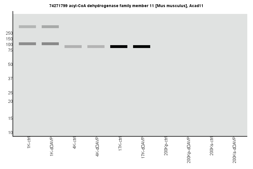 | 74271799 | Acad11 | 87218 | 1.26 | 1.26 | 1.09 | 1.09 | 1.09 | 1.09 | acyl-CoA dehydrogenase family member 11 | |||||||||||