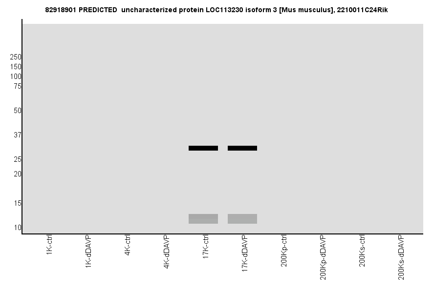 | 82918901 | 2210011C24Rik | 23046 | 1.14 | 1.14 | uncharacterized protein LOC113230 isoform 3 | |||||||||||||||