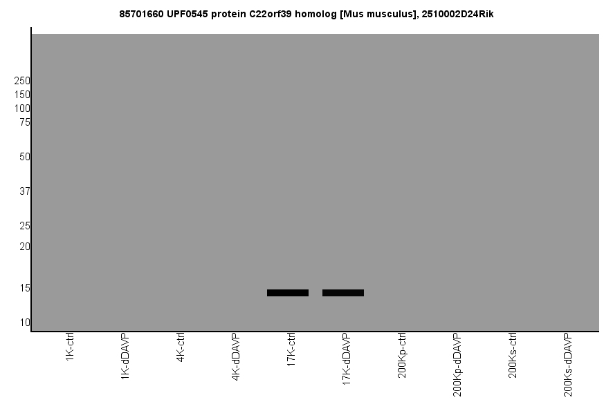| 85701660 | 2510002D24Rik | 12372 | 1.16 | 1.16 | UPF0545 protein C22orf39 homolog | |||||||||||||||